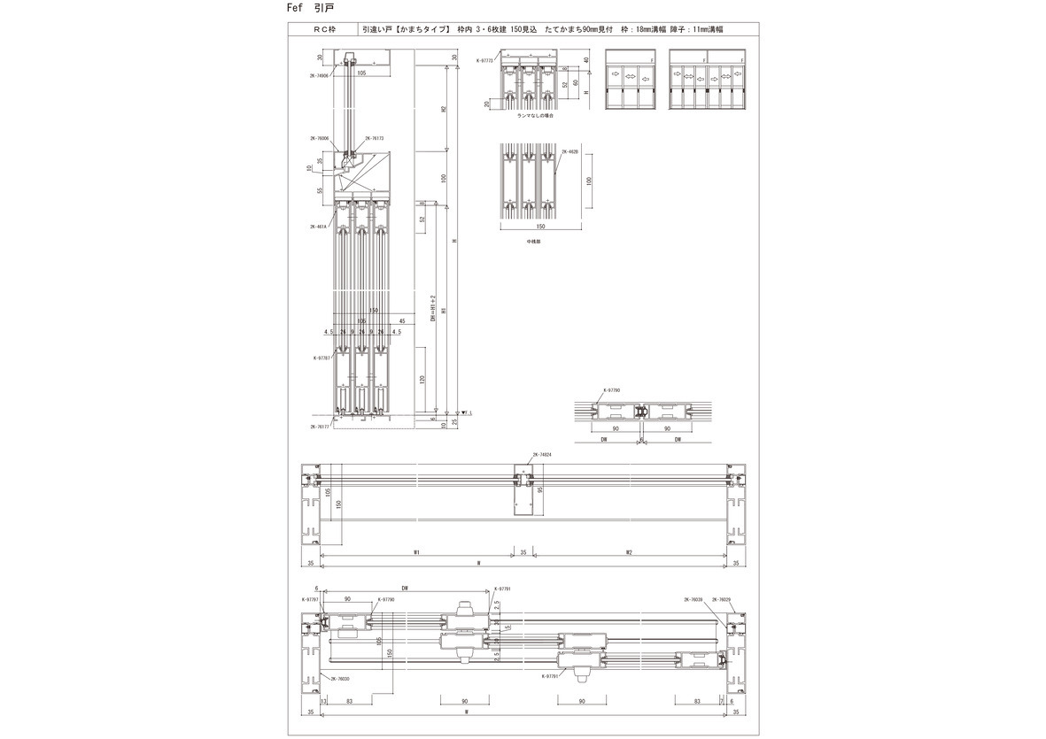Fef RC枠 引違い戸【かまちタイプ】枠内 3・6枚建 150見込 たてかまち90mm見付 障子11mm溝幅 枠18mm溝幅