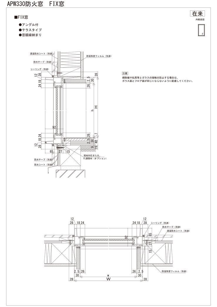 在来 APW330 防火窓 FIX窓 アングル付 窓タイプ クロス巻込み納まり