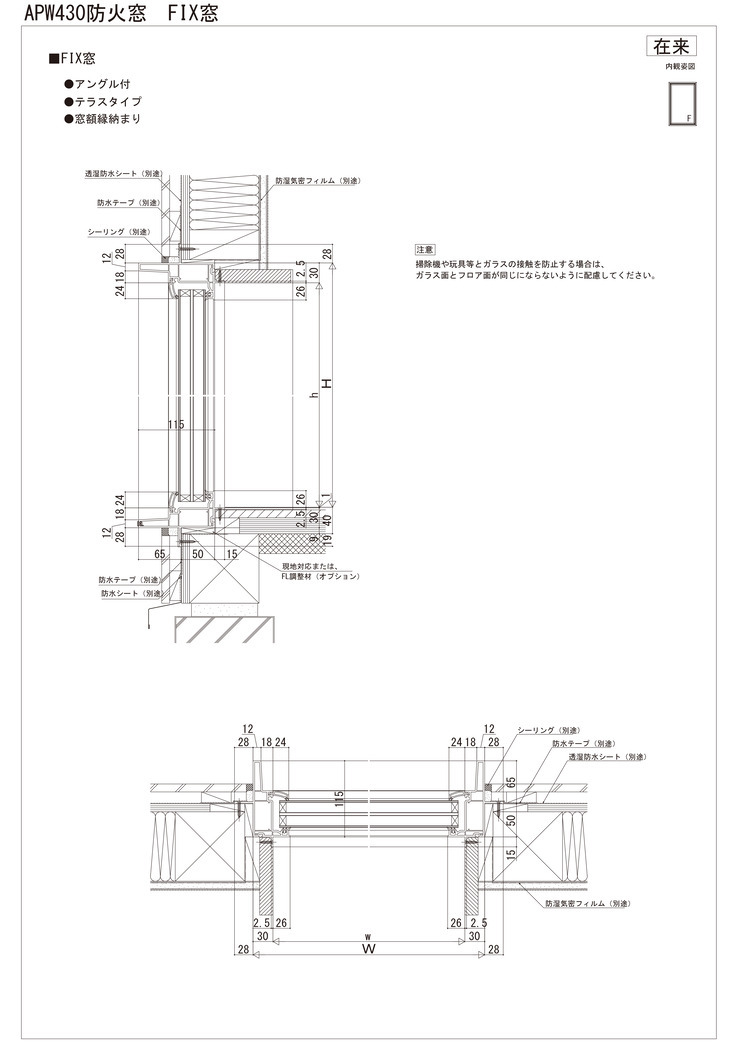 在来 APW430 防火窓 FIX窓 アングル付 窓タイプ 額縁納まり