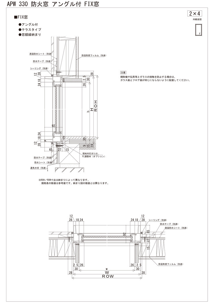 APW 330 防火窓 FIX窓 アングル付 テラスタイプ 窓額縁納まり 在来