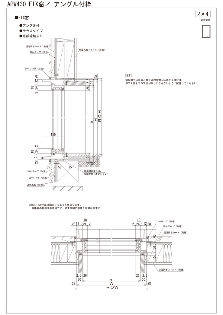 APW 430 FIX窓 アングル付 テラスタイプ 窓額縁納まり 在来